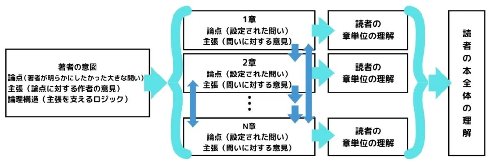 本を読んで「分かった」と思える状態は、実はこのような章単位の理解と、その章同士がどうつながり合っているかの理解という2つの理解が噛み合うことで成立する。