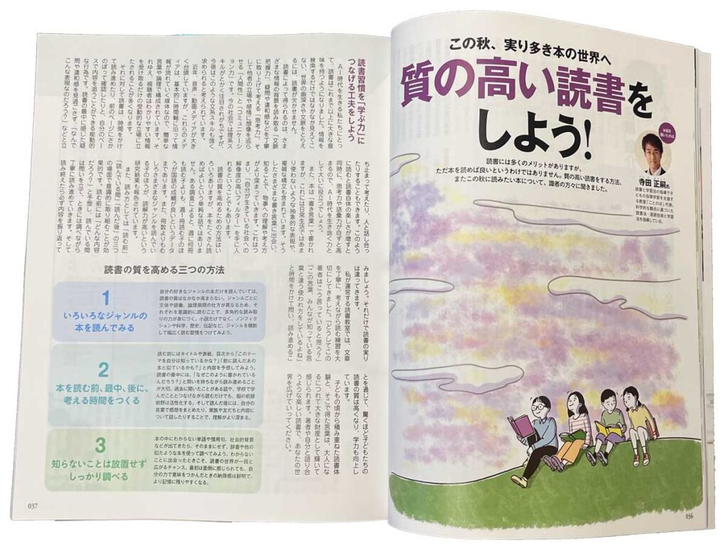 受験関連大手、四谷大塚が発刊する月刊誌「Dream Navi」2025年11月号に読書指導の専門家として、2ページのインタビュー記事と「これで解決・読書の悩み」のQ&Aへの回答を掲載していただけました。